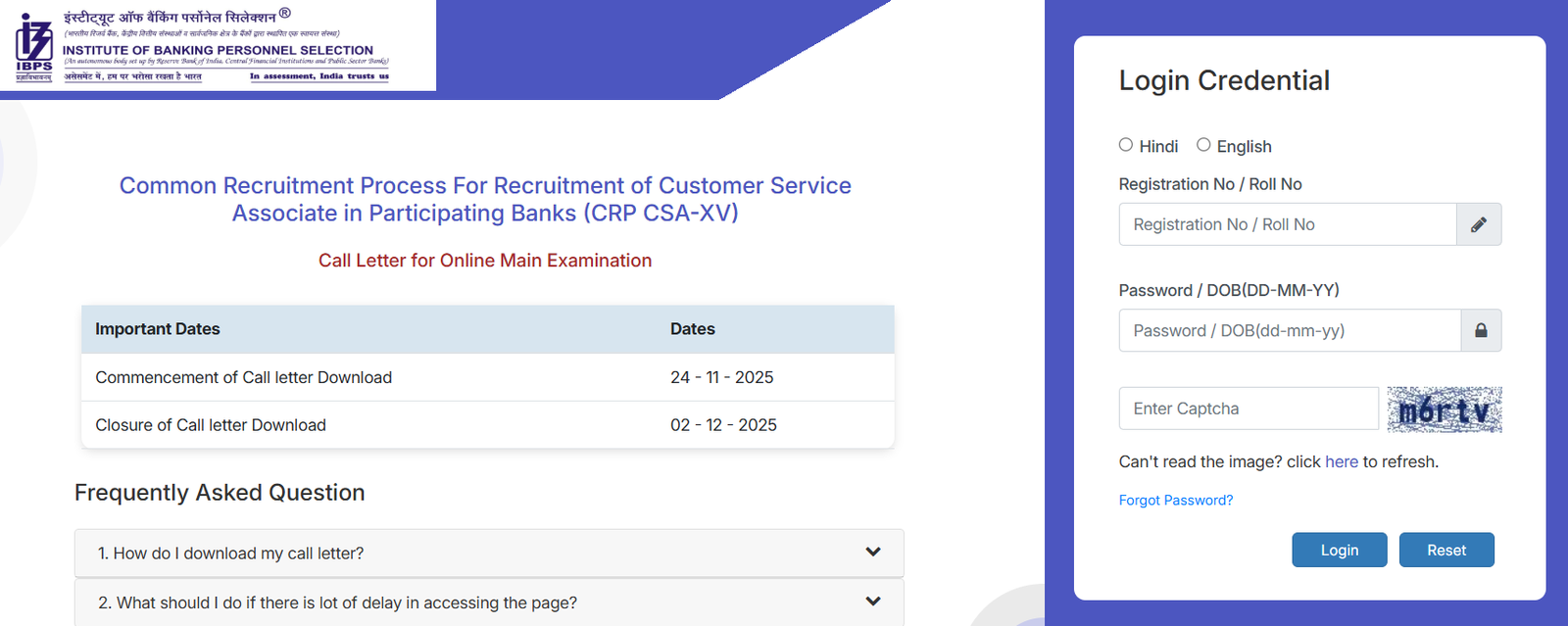 The Institute Of Personnel Selection, has released a notification on official website for the recruitment of Customer Service Associate in participating Banks (CRP CSA – XV) Clerk at Various Category. The total vacancy for all the Customer Service Associate in participating Banks (CRP CSA – XV) Clerk post is 15684 posts in different categories. The Application Form has started from 01 August 2025, and the candidates has applied up to the 28 August 2025. Candidates must have to check the necessary details of age, qualification and pay scale details which are given below. Link for notification pdf and apply are given below. The Mains Exam date of Clerks will be on 29 November 2025. The Admit Card of Customer Service Associate in participating Banks (CRP CSA – XV) Clerk has released on 24 November 2025. Link for Download the Admit Card has given below.